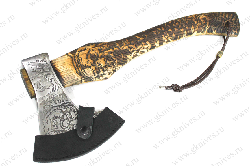 Топор изготовленный из стали 65Г. Рукоять (топорище) из ценных пород древесины. Ножны ...